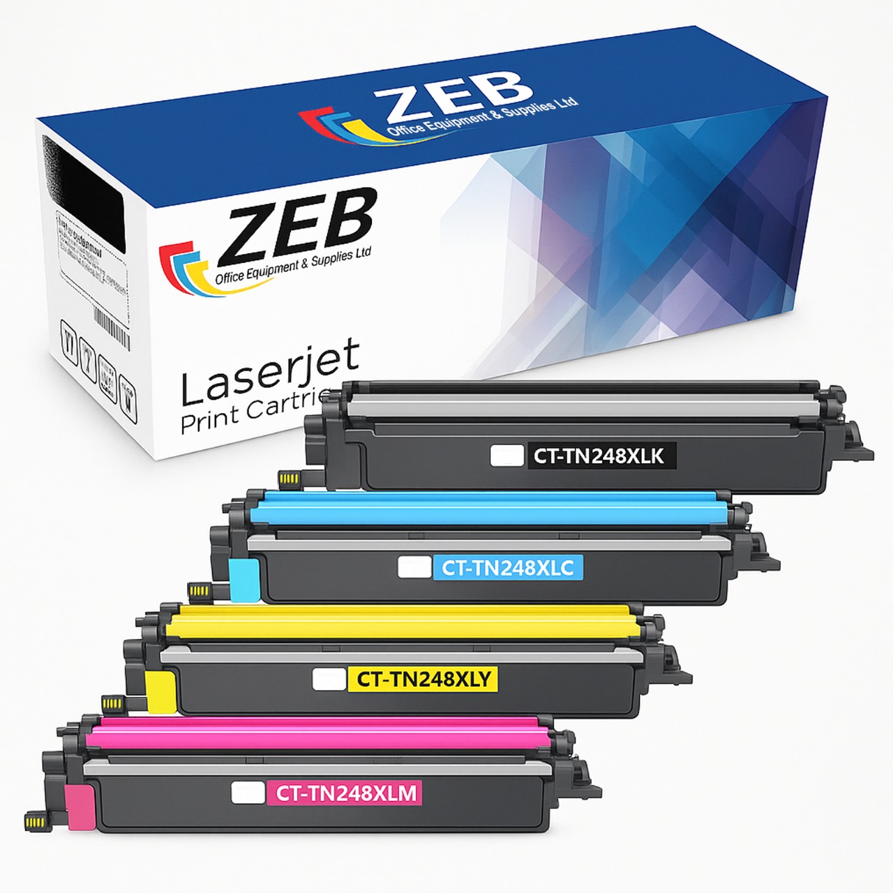4X ZEB Compatible High-Capacity Toner Cartridge Set for Brother TN248XL – Black, Cyan, Magenta, Yellow