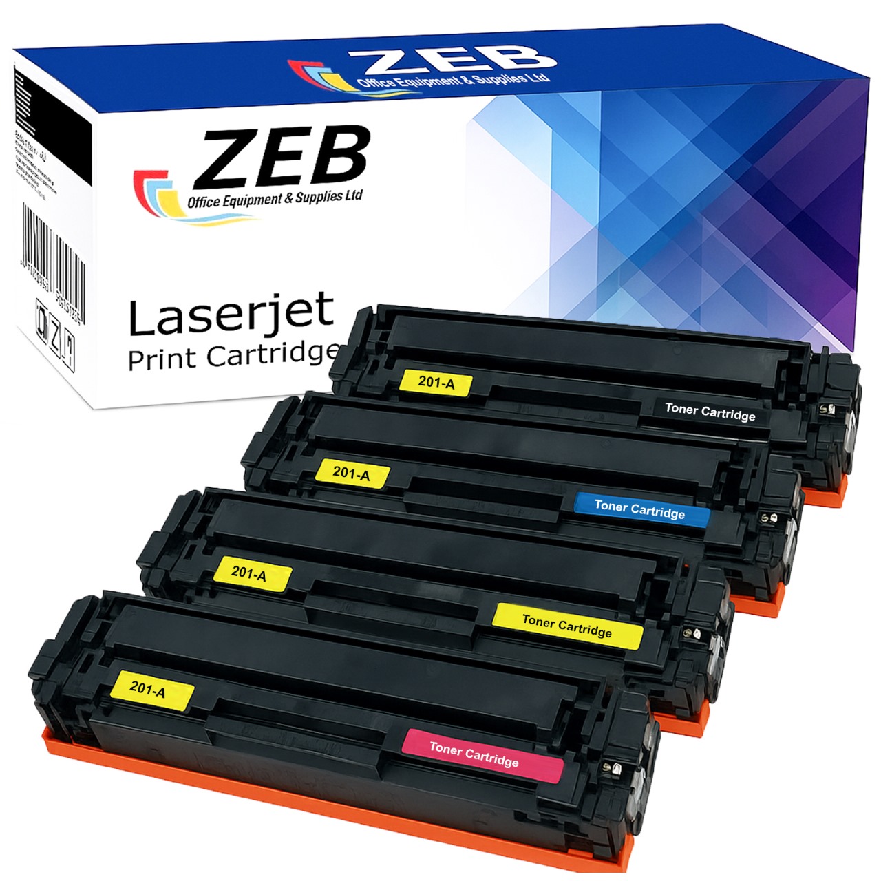 4X ZEB Compatible Toner Cartridge for HP 201A (CF400A / CF401A / CF402A / CF403A) – Black, Cyan, Magenta, Yellow
