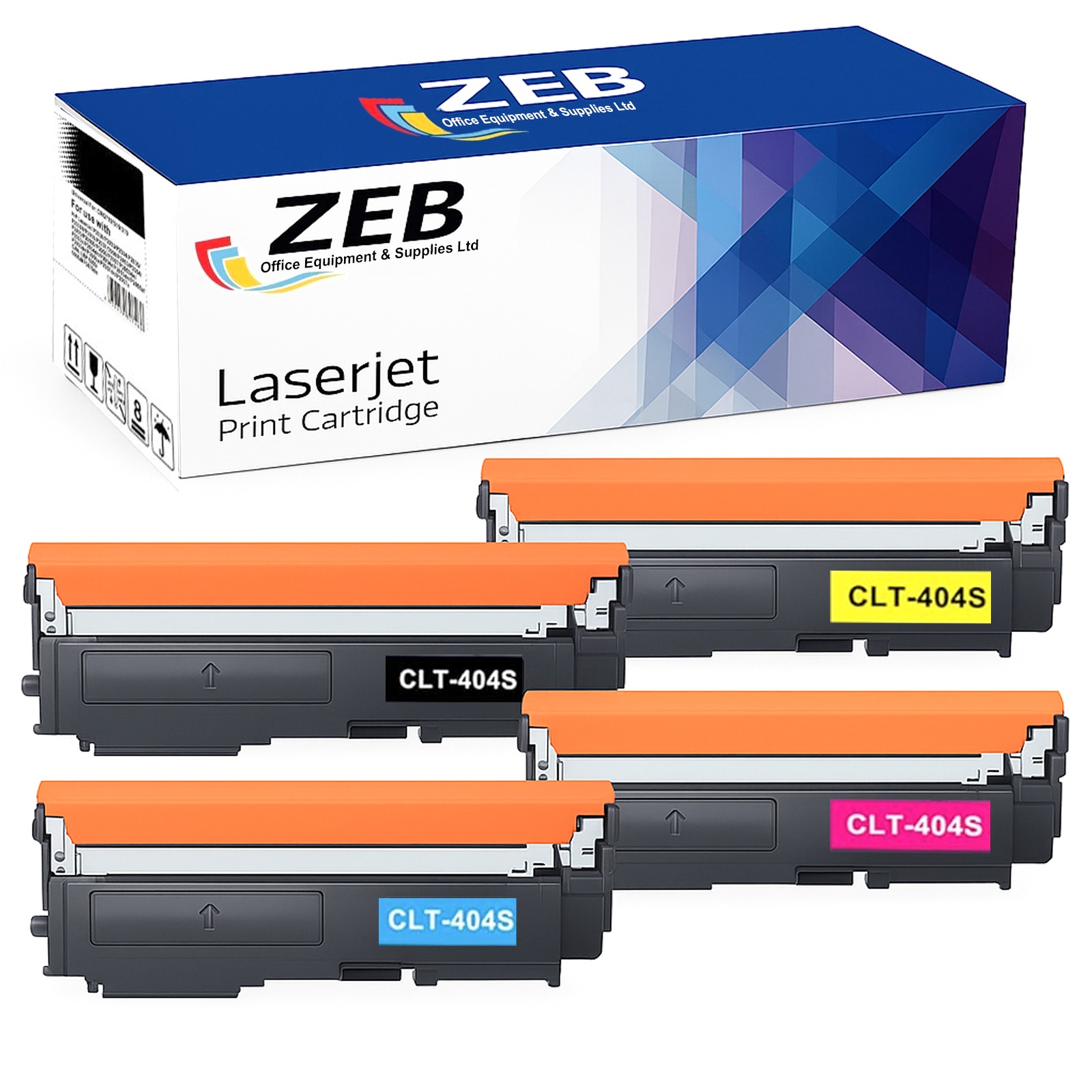 4X ZEB Compatible Toner Cartridge Set for Samsung CLT-404S – Designed for Samsung Xpress series printers C430W, C480W, C480FW, and C480FN. This multipack includes Black, Cyan, Magenta, and Yellow cartridges, offering sharp text, vibrant colors, and reliable performance at an affordable price.